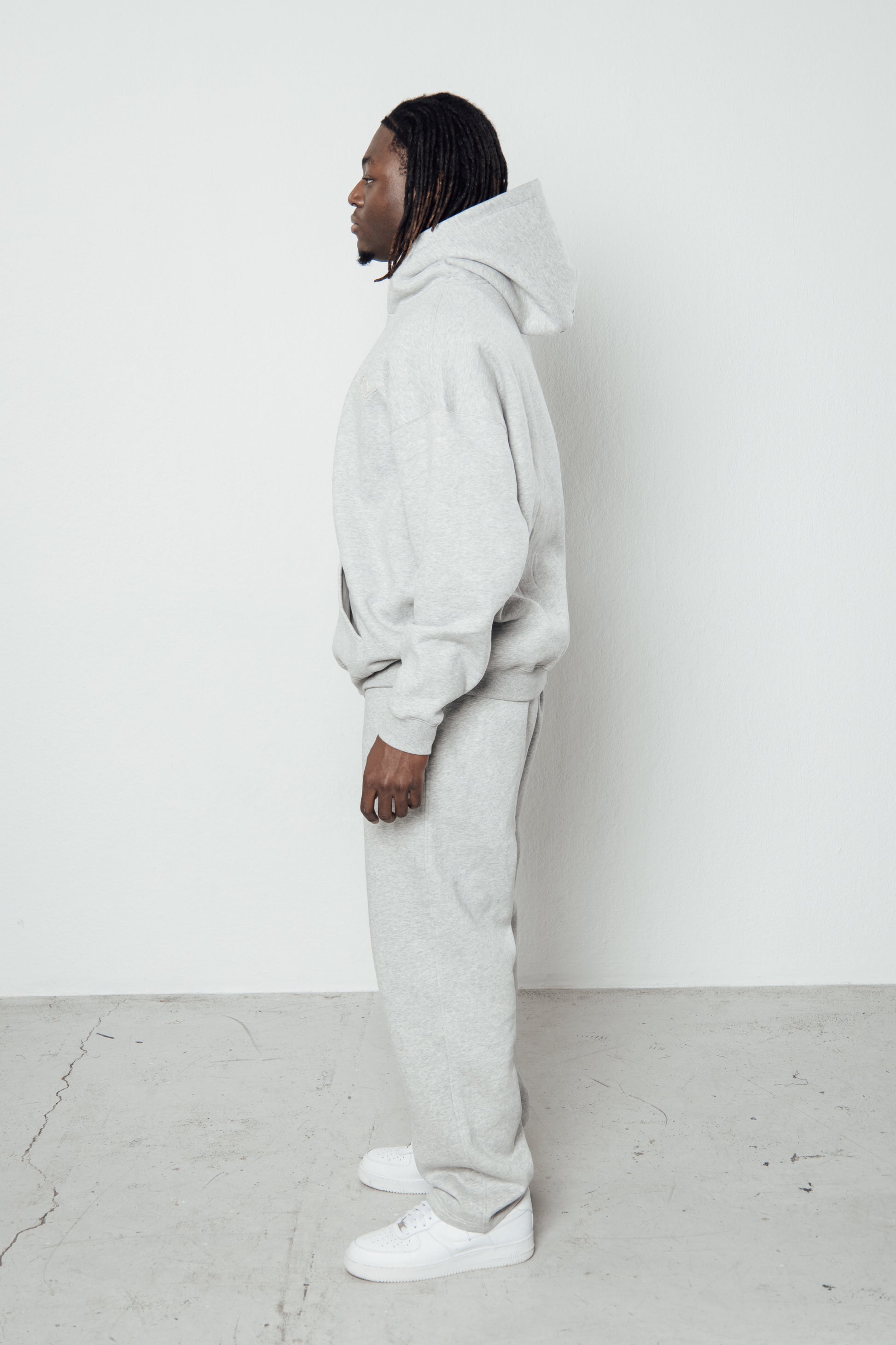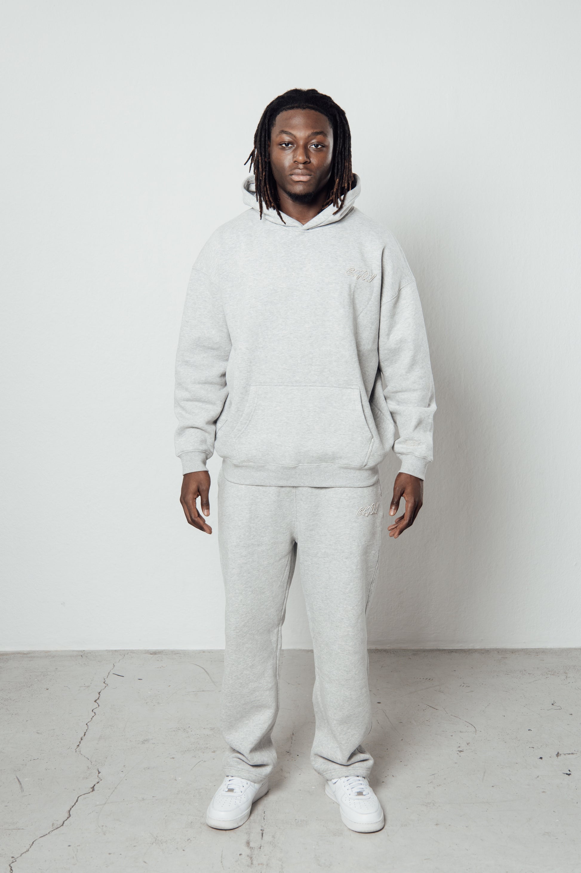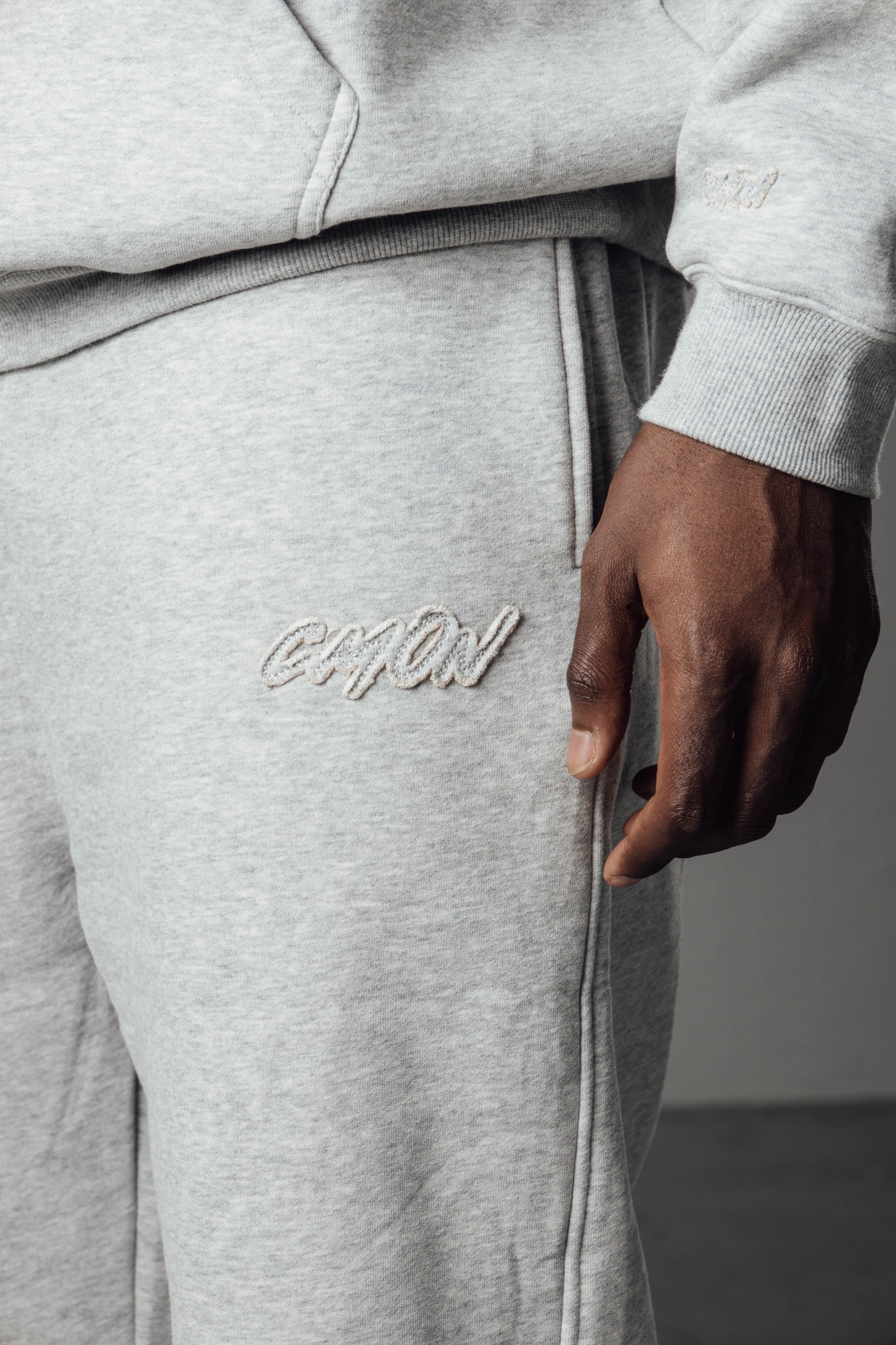Grey Signature Joggers offer a comfortable, true to size fit with a relaxed silhouette that pairs perfectly with everyday wear. Made from a substantial 465 GSM fabric, they provide a soft, premium feel. The design includes an elastic waistband you can wear inside or outside the joggers, practical side pockets, a back pocket and a frayed “Cmon” logo on the upper left front. The legs have an open, straight finish.